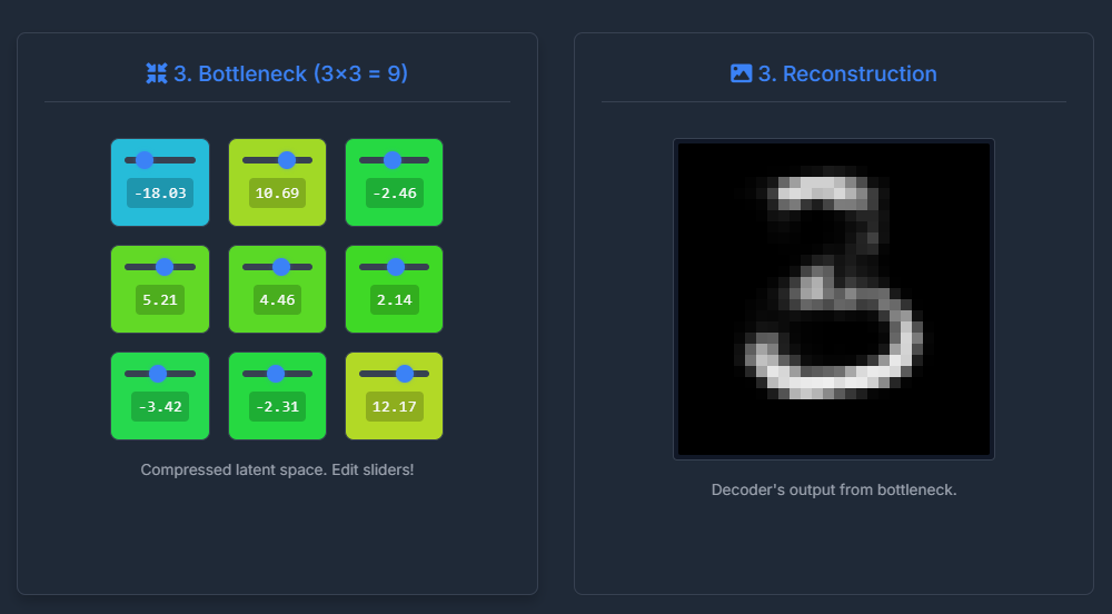 (Screenshot of Bottleneck Grid and Output of Decoder)